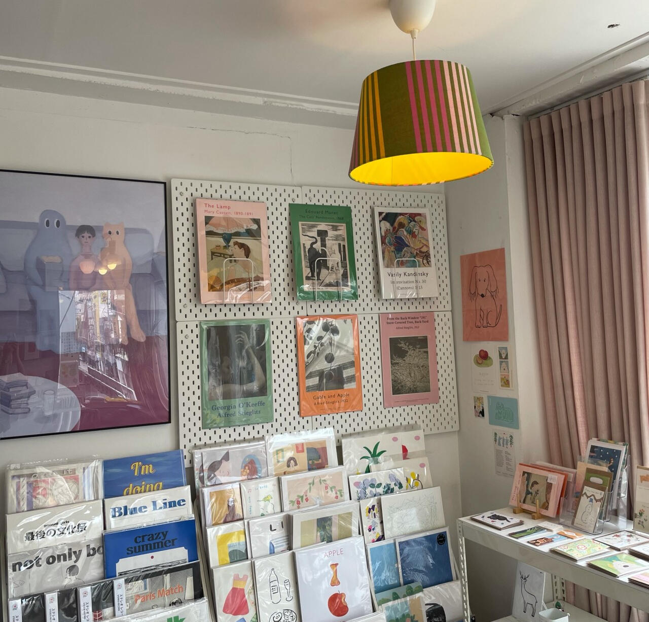 Merchandise: Unique items including postcards, stationery, and illustrated goods.